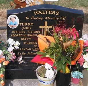 | Inscription: | WALTERS; In loving memory of TERRY (Nig), 18.5.1924 - 4.3.2006, adored husband of Betty, precious father of 11 children, loved grandad & great grandad. Sadly missed by the whanau |