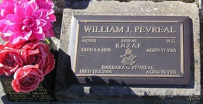 | Inscription: | 623925, 1939-45. WO. WILLIAM J PEVREAL, RNZAF died 5.4.1988 aged 77 years. BARBARA G. PEVREAL died 19.5.2006 aged 70 years, |