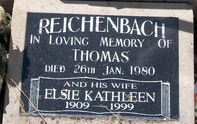 | Inscription: | REICHENBACH - In loving memory of THOMAS, died 26 January 1980. and his wife ELSIE KATHLEEN, 1909 - 1999. |