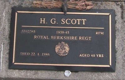 | Inscription: | 1939-45, 5342765 Rfm H G SCOTT, The Royal Berkshire Regt, died 22 January 1986 aged 69 years. |