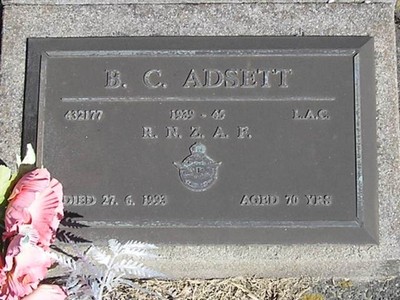432177 1939-45 L.A.C. R.N.Z.A.F. DIED 27.6.1993 AGED 70 YRS SHIRLEY E. ADSETT DIED 22.10.2010 AGED 86 YRS |